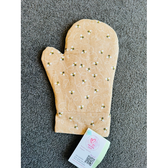 Oven Mitt made with Insul-Bright, an isulating material. It consists of polyester fibers needle-punched through a nonwoven substrate and through reflective metallized film. The needled material breathes and won´t brerak down with washing. The fiber resists conduction while the reflective metallized film resists radiant energy.